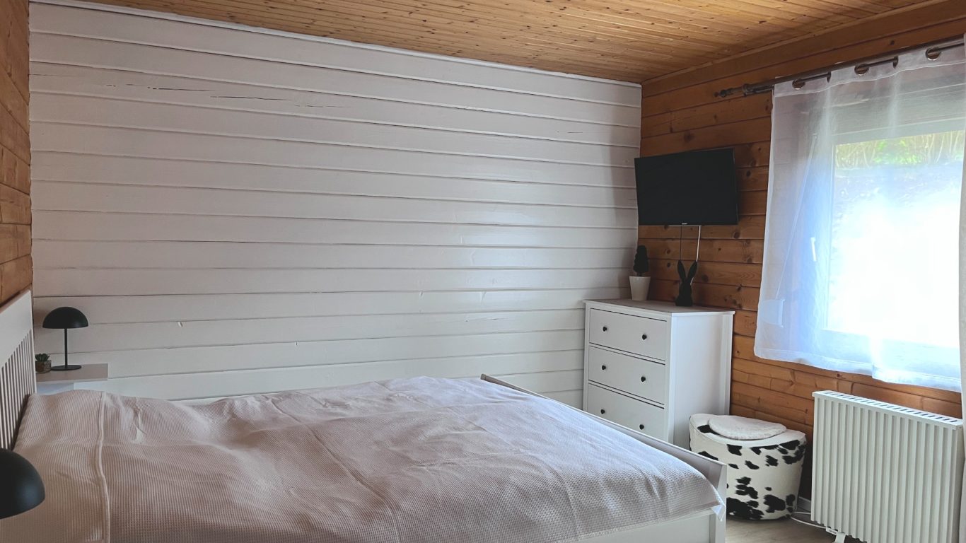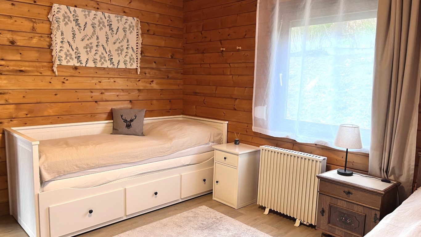 und das angenehme Klima des Holz-Blockhauses in einer ruhigen Lage, eingebettet in einer wunderschönen, hügeligen Landschaft.